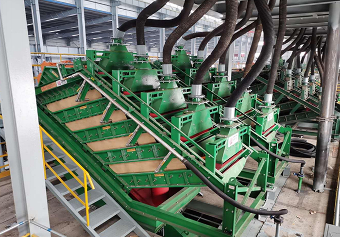 處理量更大,篩分效率更高;篩機(jī)整機(jī)采用聚脲噴涂技術(shù),保證設(shè)備長(zhǎng)期使用的防腐性;立式擠壓式喂料結(jié)構(gòu),使每層礦漿均勻分布在每層篩網(wǎng)的整個(gè)寬度上;采用中心給料,內(nèi)部溢流分料,確保每路給料均勻等量,節(jié)約空間。