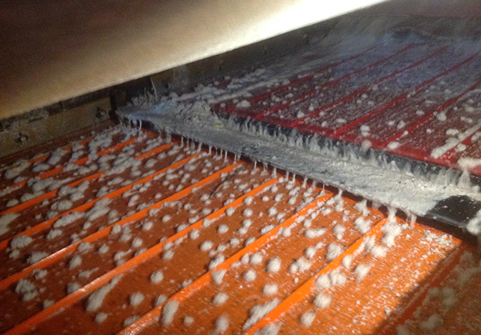 篩機(jī)主體采用鉚釘鉚接,保證了設(shè)備長(zhǎng)期運(yùn)行的可靠性和穩(wěn)定性,減少了維護(hù)次數(shù)和勞動(dòng)量。篩機(jī)表面整體采用聚脲噴涂技術(shù)進(jìn)行處理,增加了設(shè)備的耐磨性和防腐性,延長(zhǎng)設(shè)備使用壽命。使用自主開(kāi)發(fā)的聚氨酯精細(xì)篩網(wǎng),篩網(wǎng)不易堵孔,五路同時(shí)給料,處理量大,篩分效率高。